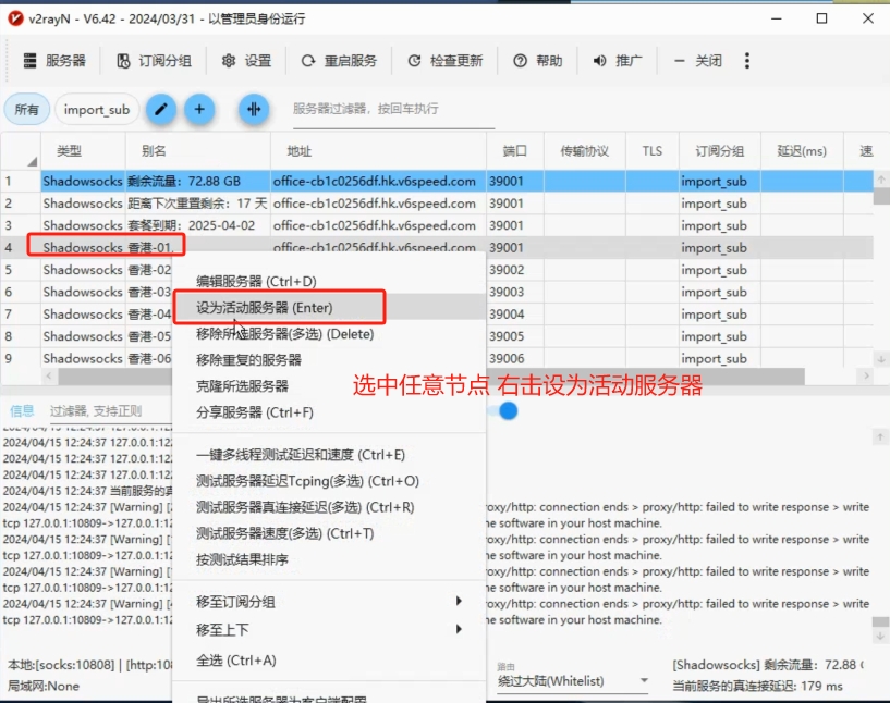 V2RayN安装 解压文件 解压后的程序缺一个插件 需要根据如图所示的提示下载 插件下载好后点击安装 再次运行即可 V2RayN 手动配置 1、获取自己的订阅 2、点击服务器从剪切板导入批量URL 3、找到订阅分组更新全部订阅 4、选择任意一个节点右击节点设为活动服务器 5、客户端下方系统代理选择自动配置代理或者不改变系统代理即可上外网 清除系统代理为关闭上网