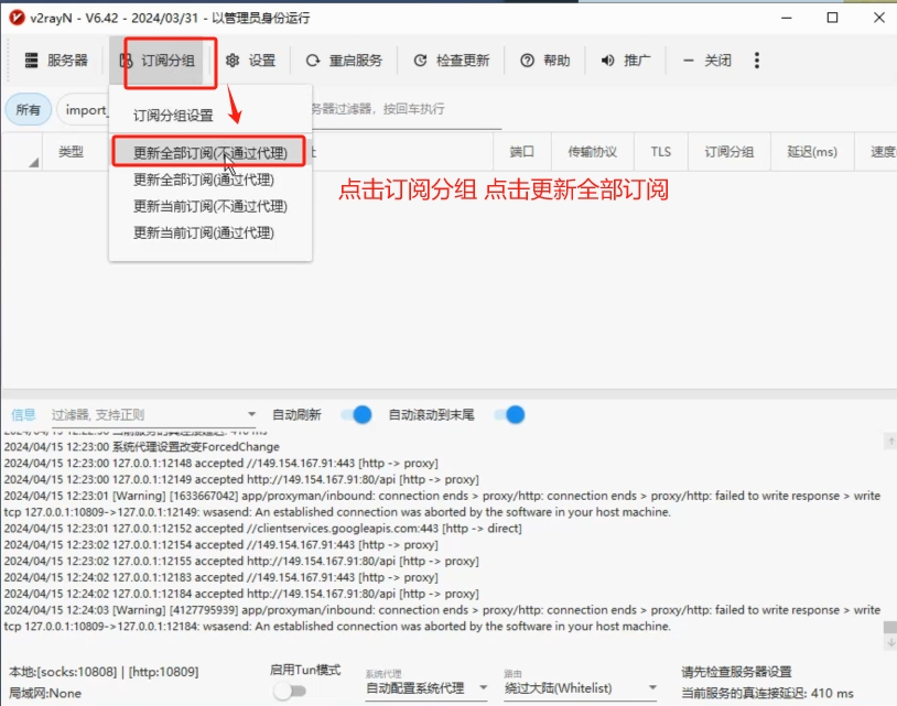 5、客户端下方系统代理选择自动配置代理或者不改变系统代理即可上外网 清除系统代理为关闭上网